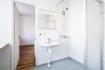 Eteisestä on käynti erilliseen wc:hen. Vaaleapintaiset wc ja pesuhuone on kunnostettu 1995. Asunnossa on kauttaaltaan lämmin ruskeansävyinen laminaattilattia. Seinät on maalattu kahdella eri harmaan sävyllä ja valkoisella.