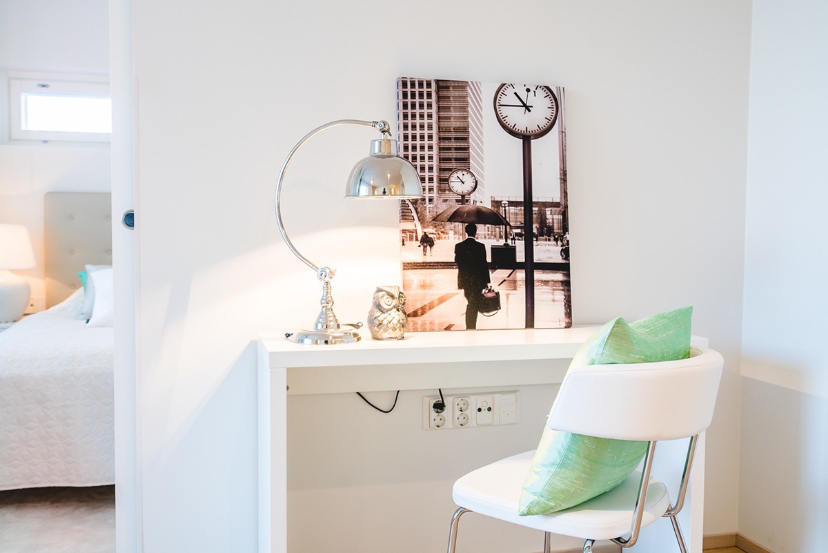 Työpöytä sijoitettu olohuoneen puolelle